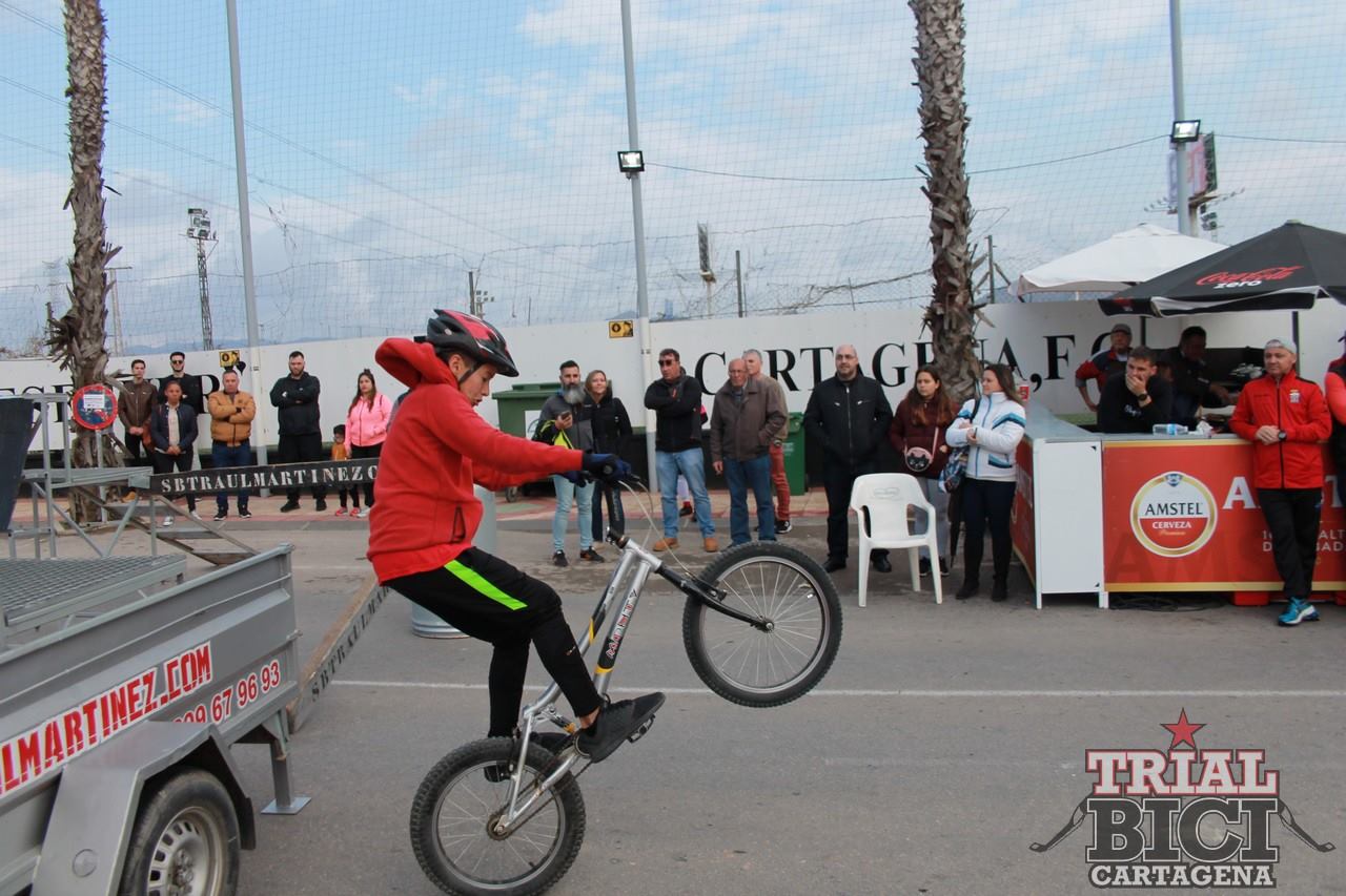Espectacular exhibici贸n de nuestra escuela de trial bici en el centenario del Cartagena F.C.聽 el 23 de Marzo 馃憦馃憦馃憦