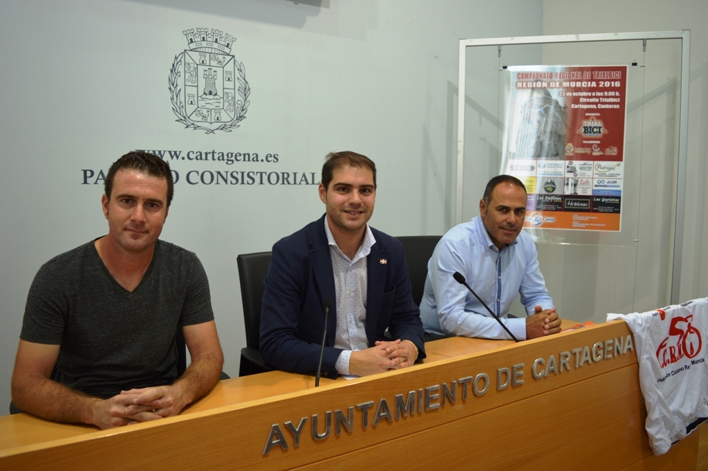 Ricardo Segado, concejal de Deportes del Ayuntamiento de Cartagena, ha presentado en la Sala de Prensa del Palacio Consistorial a las 12 horas, el Campeonato Regional de Trial bicique se celebrará en Cartagena el próximo domingo 23 de octubre. Le han acompañado en la presentación Fulgencio Sánchez, presidente del club afitrión del evento, el Trial Bici Cartagena; y Raúl Martínez, director técnico de la Federación de Ciclismo de la Región de Murcia y organizador de la competición con el apoyo de la Concejalía de Deportes.